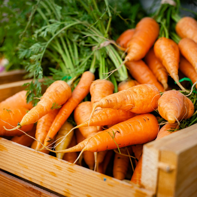 Bospeen is een zoete en sappige wortel met loof. Heerlijk om rauw te snacken, te koken of te roosteren in de oven. Een gezonde en kleurrijke toevoeging aan de maaltijd.