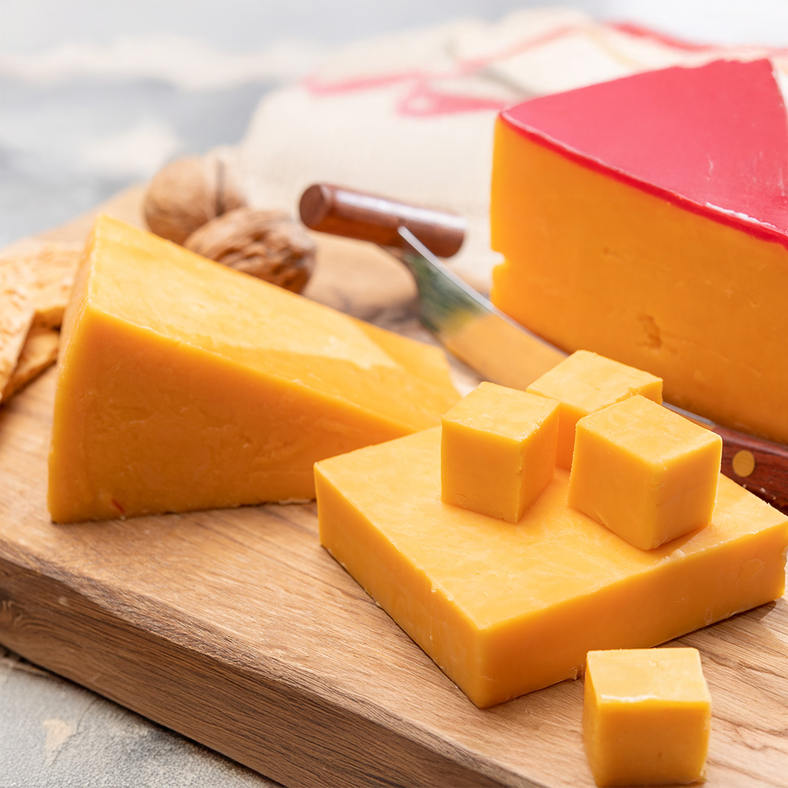 Cheddar rood is een Engelse kaas met een zachte, nootachtige smaak met een zoete tint. Heerlijk voor op een hamburger!