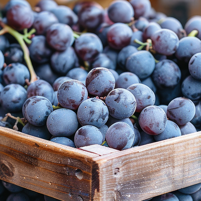 Blauwe druiven zijn stevig en sappig met een volle, zoete smaak. Lekker als gezonde snack of in een salade.
