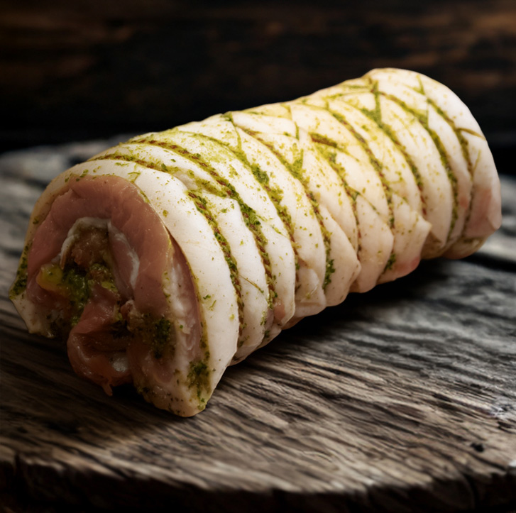 Je kunt deze het beste (als je daar de mogelijkheid voor hebt, anders oven) indirect op de bbq eerst langzaam laten garen op ongeveer 140 graden tot de kern ongeveer 70 graden is (na +/- 3uur). Dan voer je de temperatuur op naar een dikke 240 graden en gril je de rollade rondom in 20 min lekker bruin en krokant! (let op niet te zwart/ te heet)